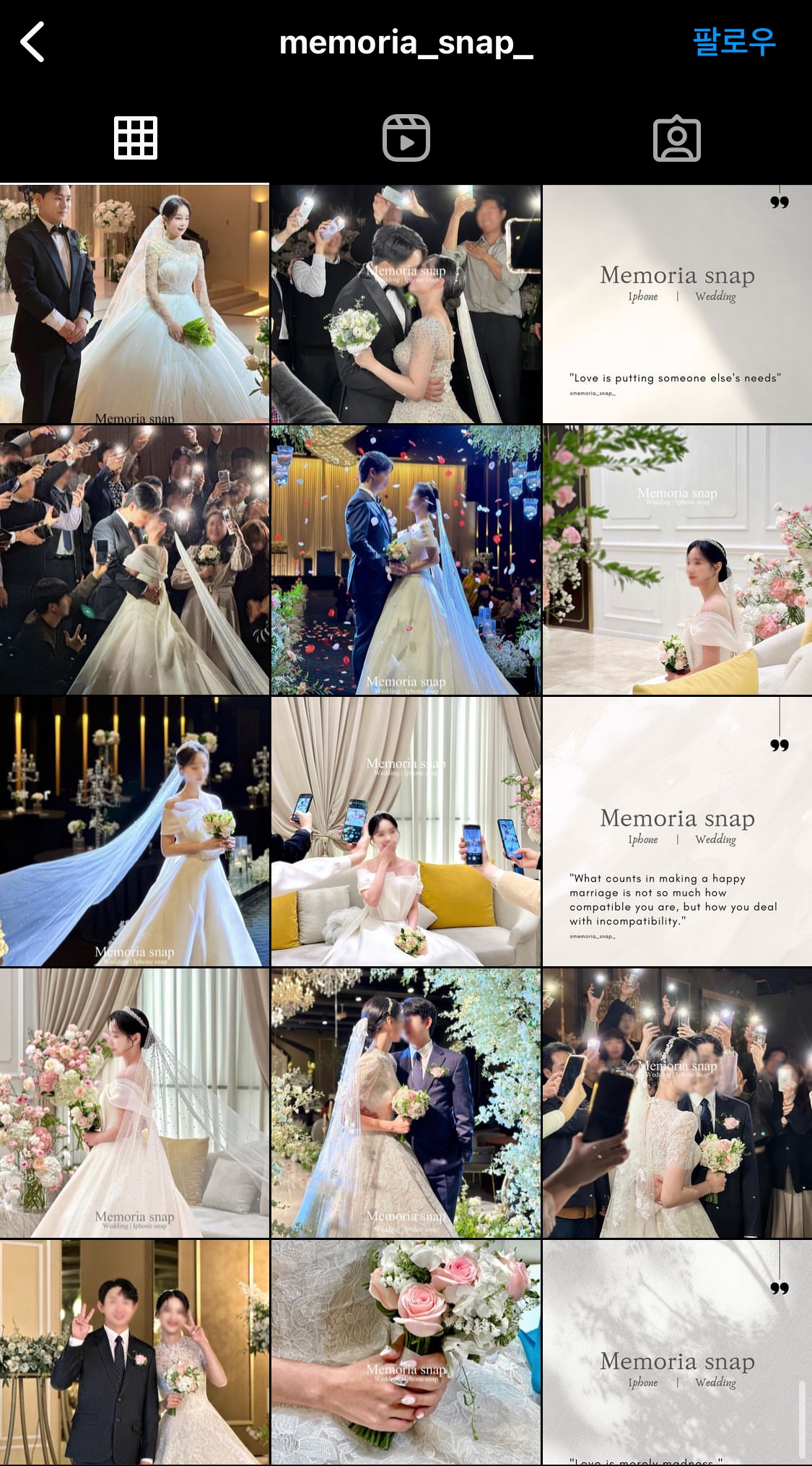내가 결혼할 홀에서 아이폰 스냅이 어떻게 찍히는지 알고 싶다면 이 업체 인스타만큼 '잘 정리된' 곳을 보기 힘들다.