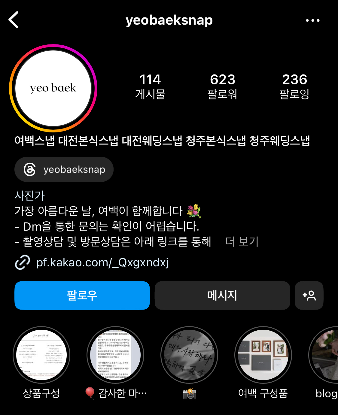업체마다 필터 느낌이 다르다는 말이 뭔지 조금 알겠는게, 색감이나 뭐 그런건 모르겠고 그냥 느낌이 있다. 내 마음에 드는 사진이. 그러니까 꼭 업체의 인스타를 꼼꼼히 보시길.